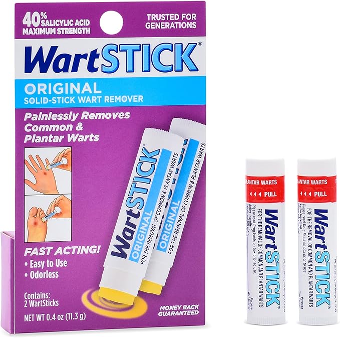 WartStick Maximum Strength Salicylic Acid Solid-Stick Common and Plantar Wart Remover 2 Pack, 0.4 Oz