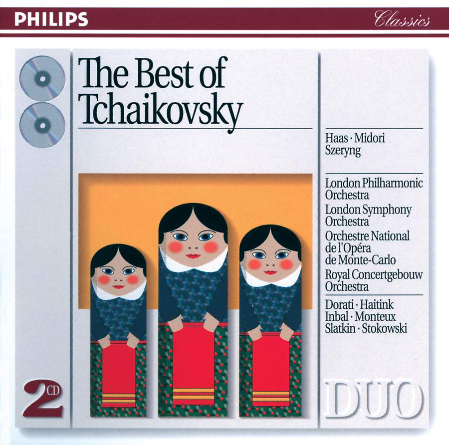 Various Artists - The Best of Tchaikovsky Album Reviews ... - AllMusic Discover The Best of Tchaikovsky by Various Artists released in 2003. Find album reviews, track lists, credits, awards and more at AllMusic. The best of Tchaikovsky - YouTube I decided to make a better "best of Tchaikovsky" Classical mu... TCHAIKOVSKY - Best of Tchaikovsky - Amazon.com Music Best of Tchaikovsky TCHAIKOVSKY (Artist) Format: Audio CD 146 ratings $1359 Get Fast, Free Shipping with Amazon Prime FREE Returns See all 2 formats and editions Streaming Unlimited MP3 $7.99 Listen with our Free App Audio CD $13.59 31 Used from $1.43 16 New from $8.56 Additional Details Small Business This product is from a small business brand. The Best of Tchaikovsky - Philips: 4383862 - Presto Music The Best of Tchaikovsky. Philips: 4383862. Buy 2 Presto CDs or download online. Werner Haas (piano), Hugh Maguire (violin), Henryk Szeryng (violin) Orchestre National de l'Opéra de Monte-Carlo, London Symphony Orchestra, London Philharmonic Orchestra, Royal Concertgebouw Orchestra, Eliahu Inbal, Leopold Stokowski, Leonard Slatkin, Pierre Monteaux, Antal Doráti, Bernard...