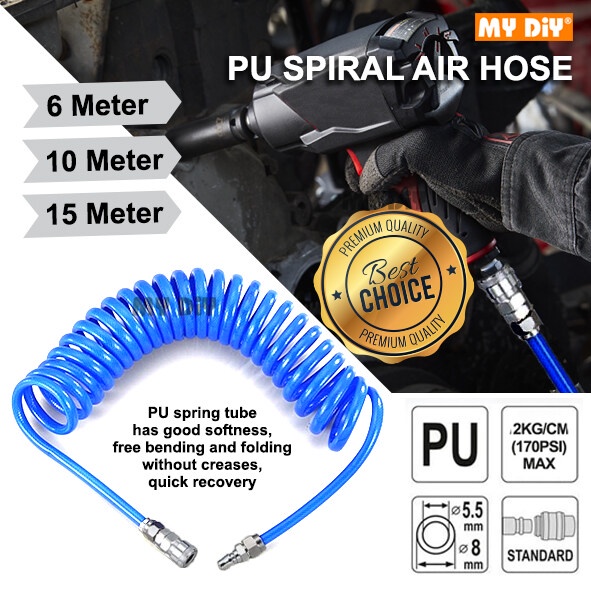 PU Spring Recoil Spiral Air Pressure Hose Tube Pipe For Air Compressor Pressure Spray Gun 15m 12m 9m 6m Flexible