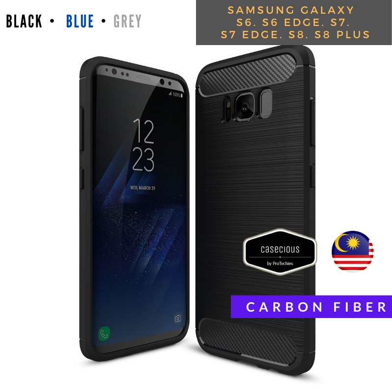 Samsung Galaxy S6,S6 Edge,S7,S7 Edge,S8,S8 Plus Carbon Fiber Slim Brushed Line Medium Hard TPU Casing Cover