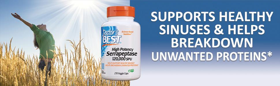 Doctor's Best High Potency Serrapeptase, Non-GMO, Gluten Free, Vegan ... Doctor's Best High Potency Serrapeptase 120,000 SPU is formulated with Serrateric, a superior alternative to enteric coating that protects the individual enzyme until it reaches the intestine for optimal absorption.* Promotes & Maintains Healthy Sinus and Airway Function* The Amazing Enzyme Serrapeptase!